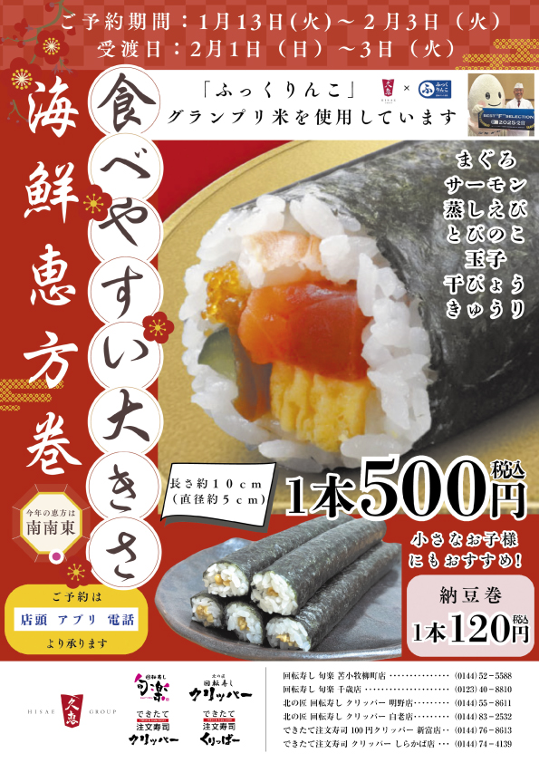 2026年1月29日海鮮恵方巻き ご予約受付中