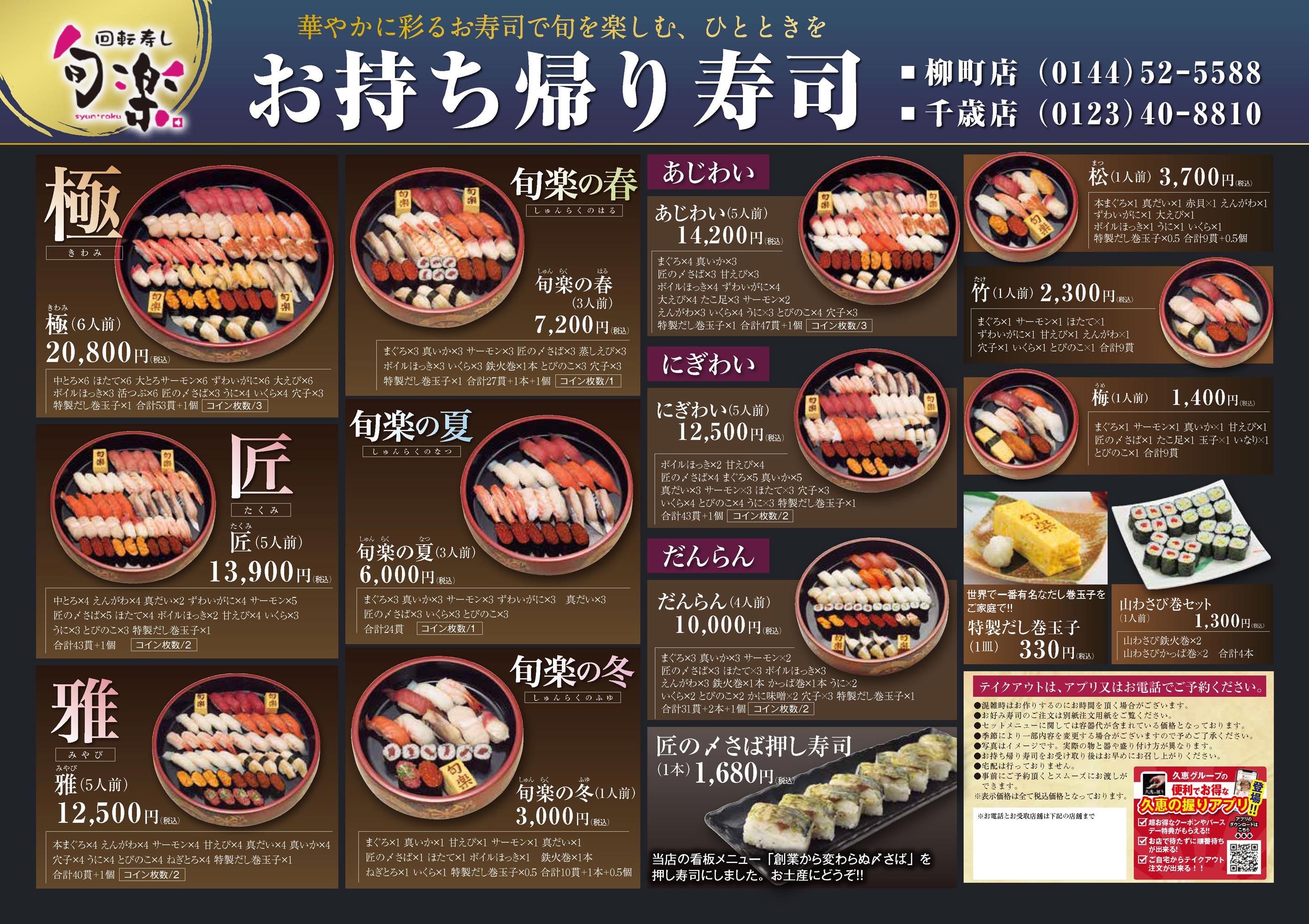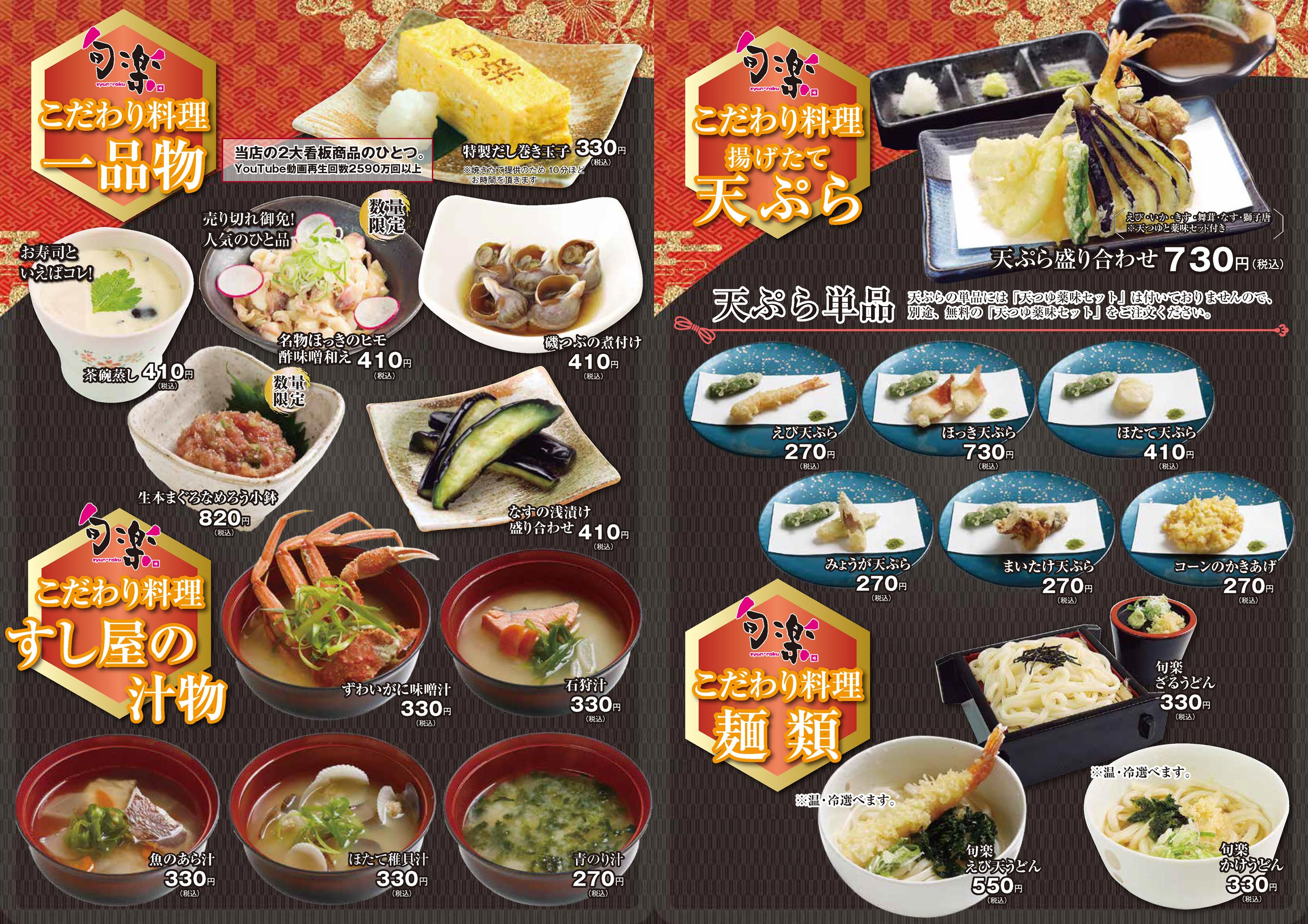 「旬楽」の名のとおり、春夏秋冬を味わえる旬の素材を数多くご用意しております。鮮度の良さを実感していただけるよう、食材の仕入れと管理には徹底してこだわっています。小上り席には北海道の回転寿司では初となる、2種類の自動配膳システムを導入!!